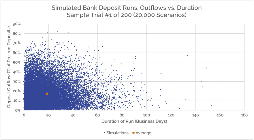 Analysis of 66 historical bank runs and stresses, incorporating duration and deposit outflow data.